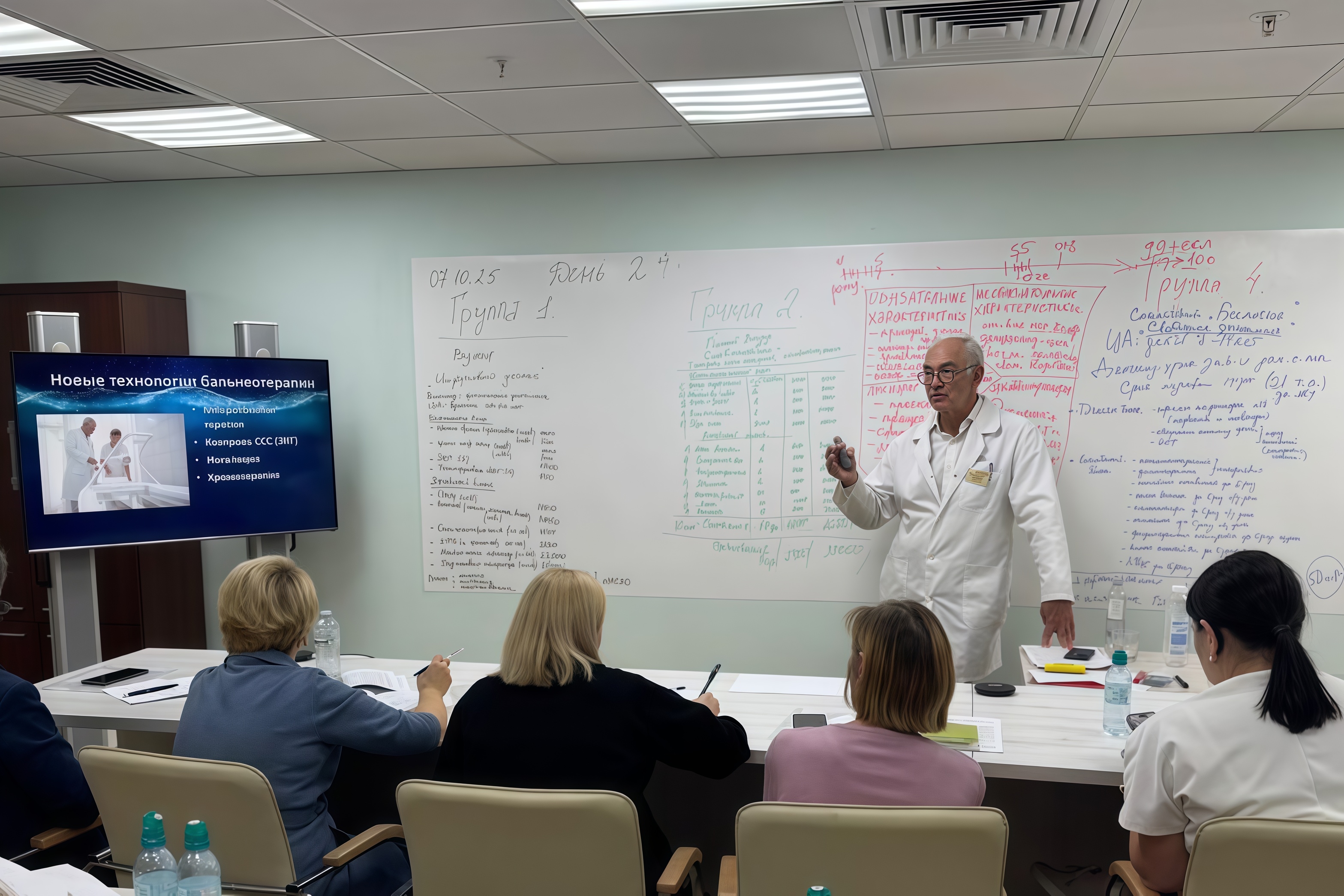 Также участники обучения получили уникальную возможность увидеть своими глазами применение лучших методик в области медицинской реабилитации и лечения с использованием природных лечебных ресурсов в рамках экскурсии по Национальному медицинскому исследовательскому центру реабилитации и курортологии Минздрава России.