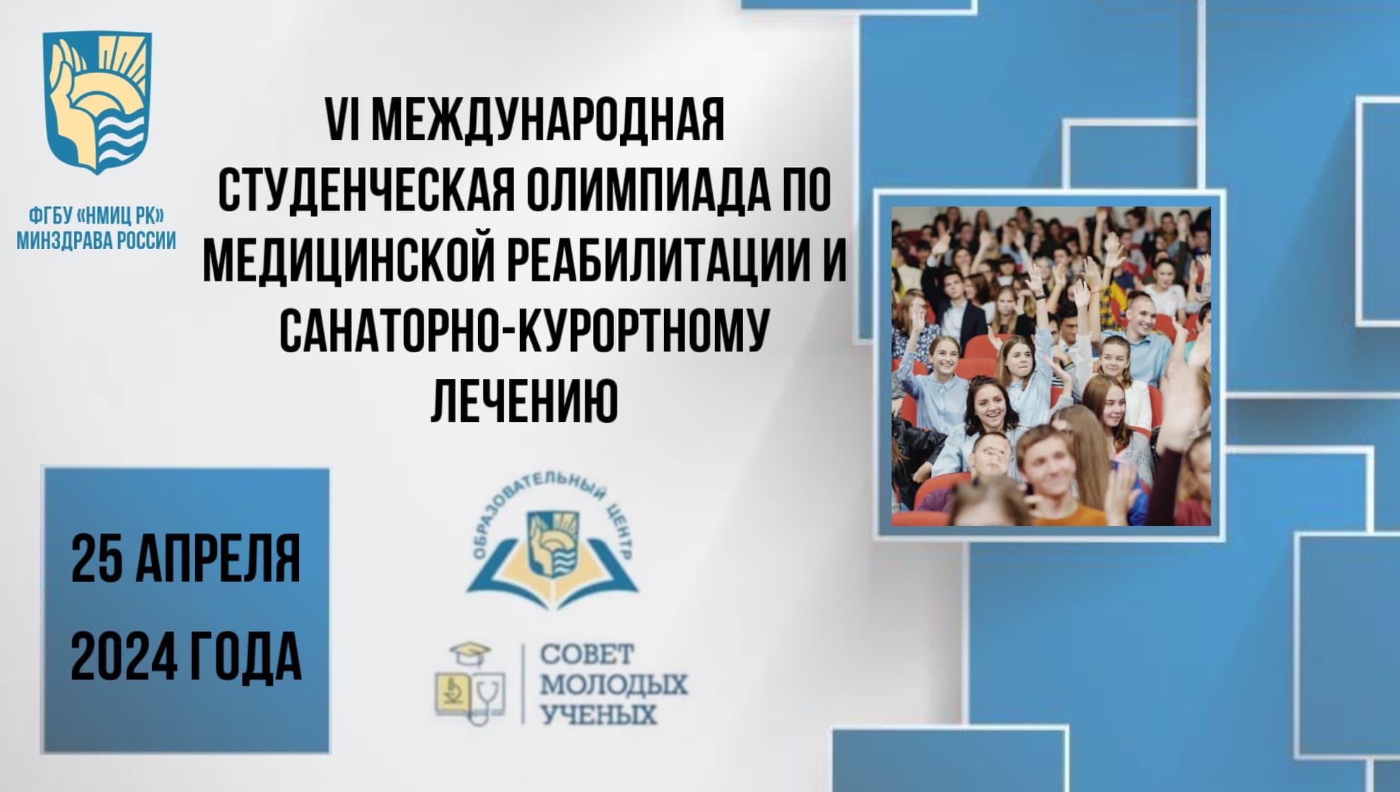НМИЦ реабилитации и курортологии Минздрава России 25 апреля 2024 года проведет Олимпиаду по медицинской реабилитации и санаторно-курортному лечению.