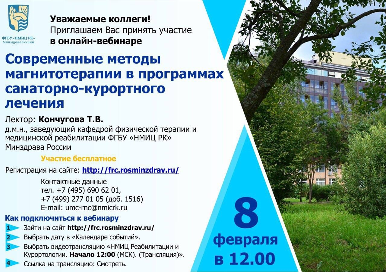 Приглашаем Вас принять участие в онлайн-вебинаре «Современные методы магнитотерапии в программах санаторно-курортного лечения», который состоится 08 февраля в 12.00.
