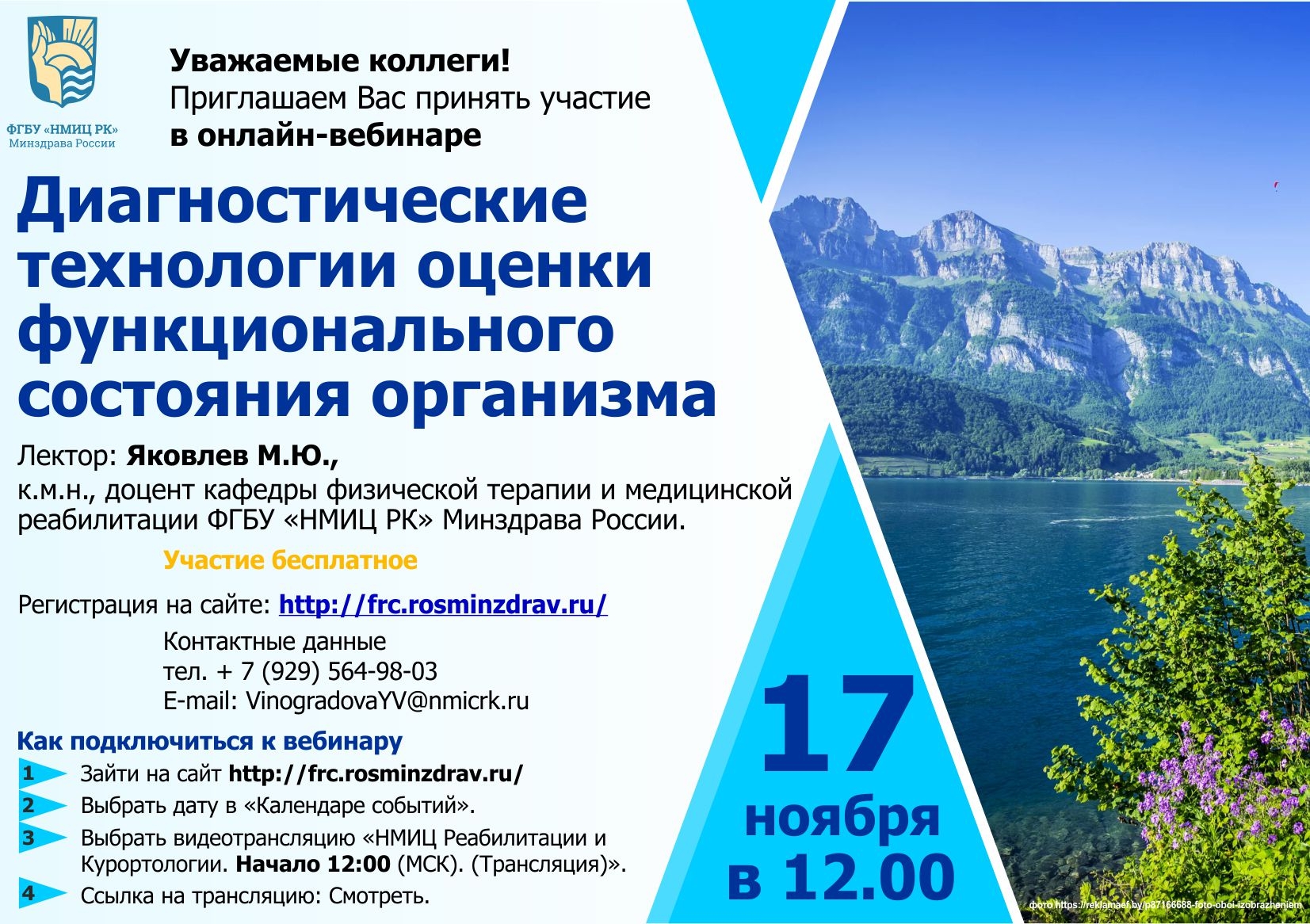 Лектор: Яковлев М.Ю., к.м.н., доцент кафедры физической терапии и медицинской реабилитации ФГБУ «НМИЦ РК» Минздрава России.