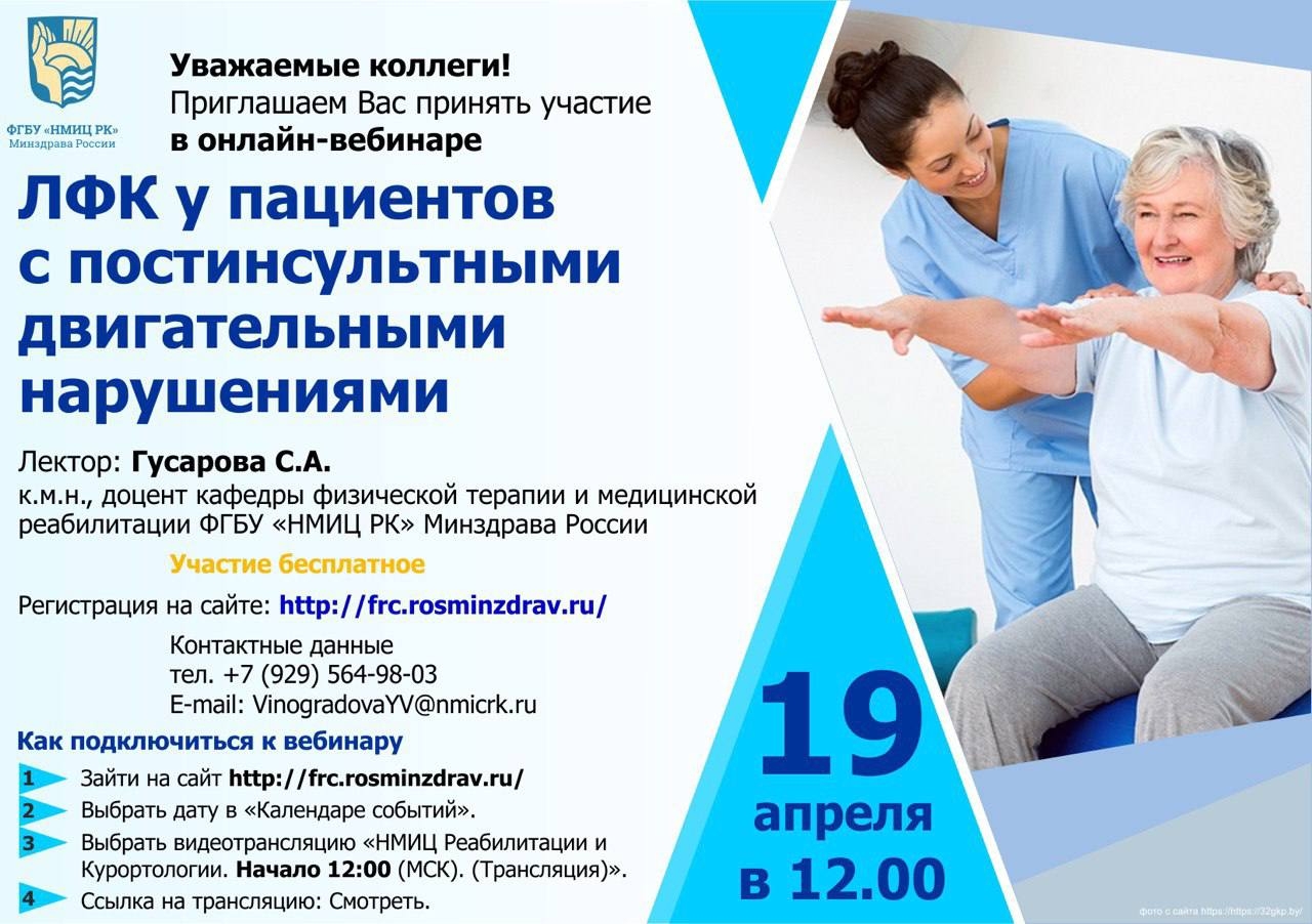 Приглашаем Вас принять участие в онлайн-вебинаре «ЛФК у пациентов с постинсультными двигательными нарушениями», который состоится 14 апреля в 12.00.