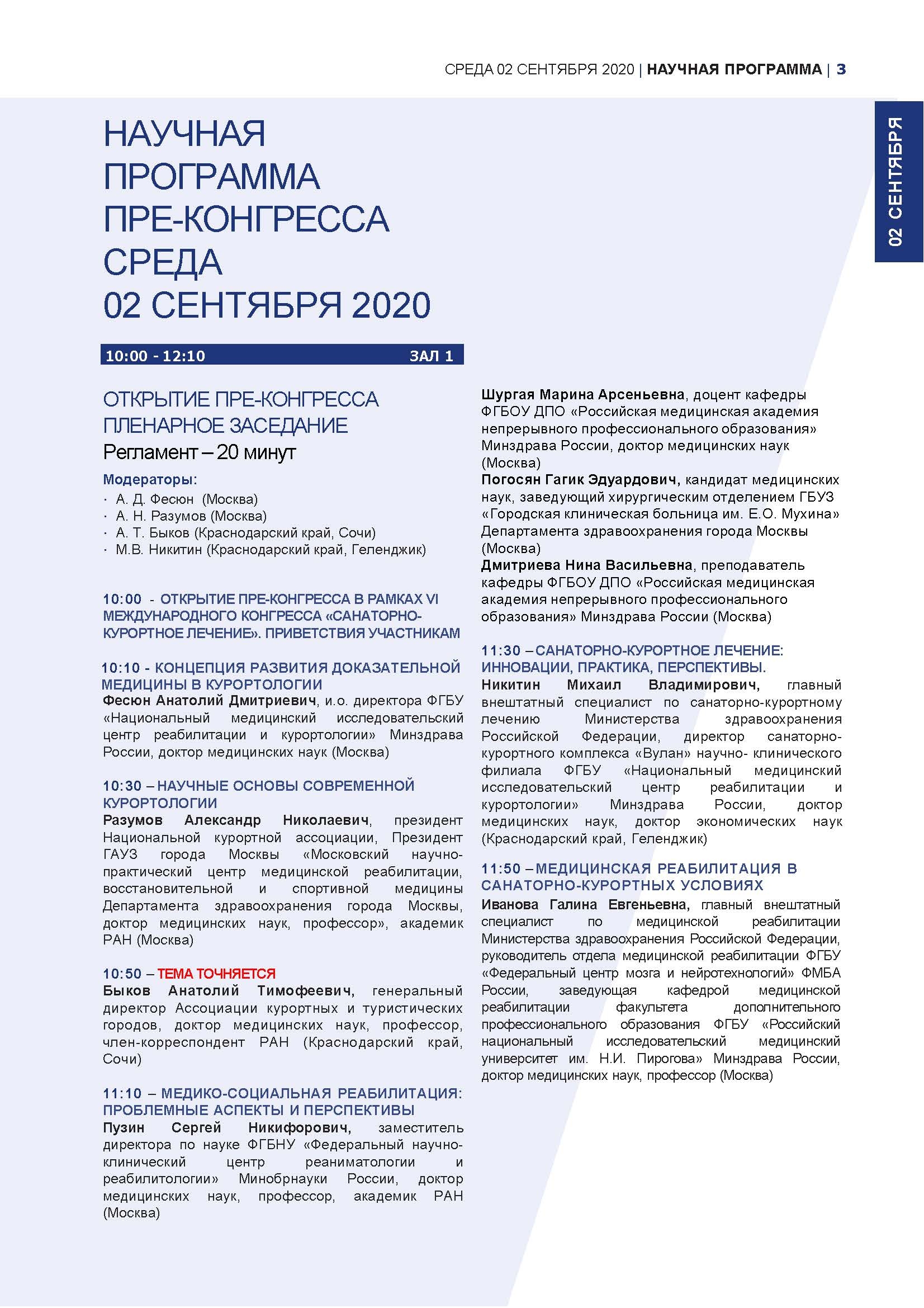 2-3 сентября 2020 года в 10.00 по московскому времени в онлайн-формате пройдет Преконгресс в рамках VI Международного конгресса «Санаторно-курортное лечение»