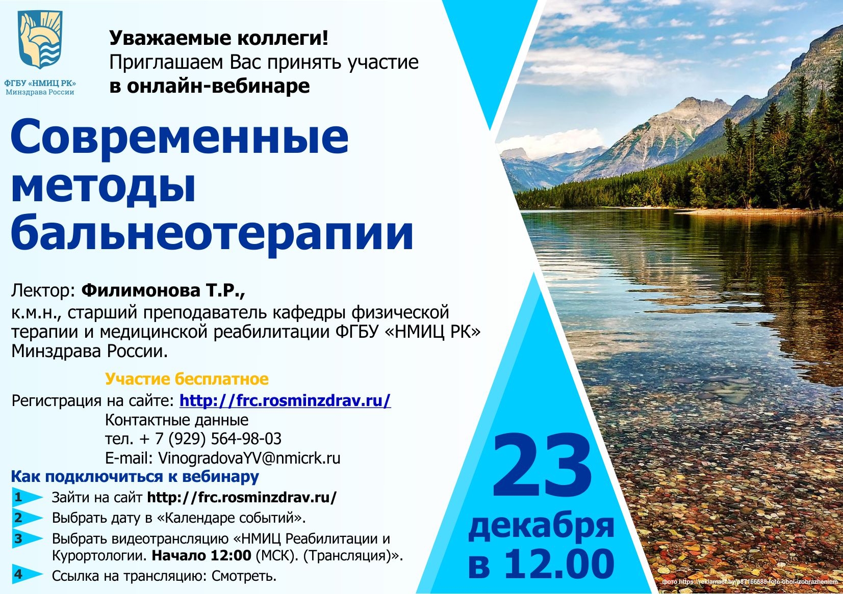 Приглашаем Вас принять участие в онлайн-вебинаре «Современные методы бальнеотерапии», который состоится 23 декабря в 12.00.