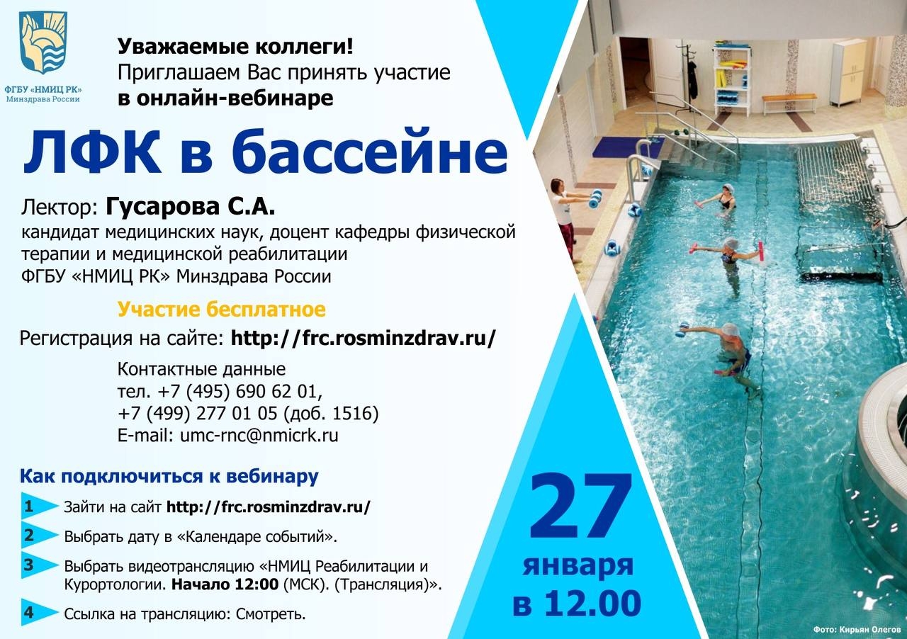 Приглашаем Вас принять участие в онлайн-вебинаре «ЛФК в бассейне», который состоится 27 января в 12.00.