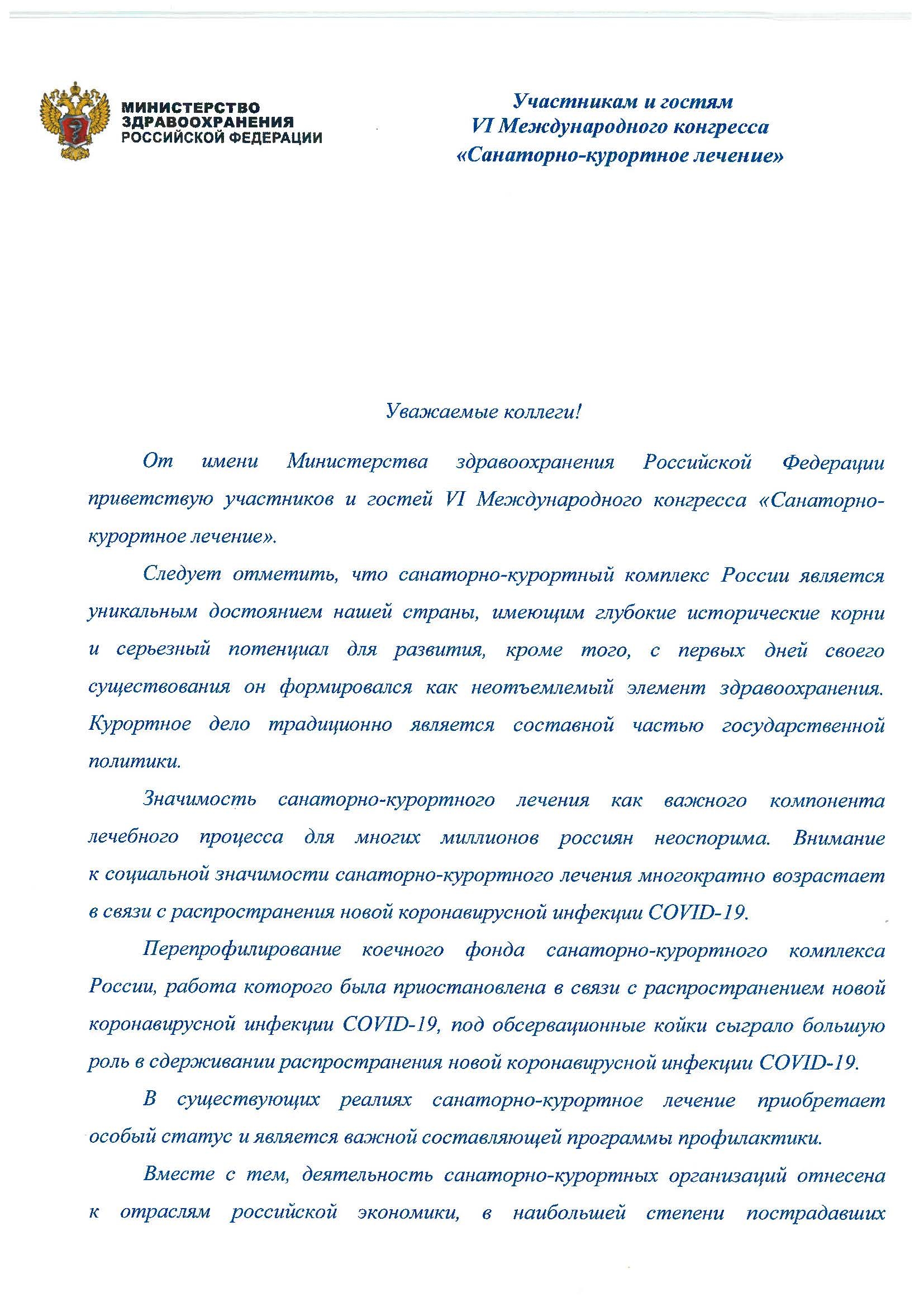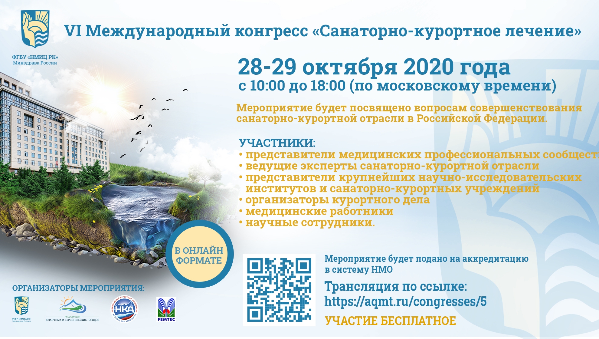 28-29 октября 2020 года в онлайн-формате состоится VI Международный конгресс «Санаторно-курортное лечение»